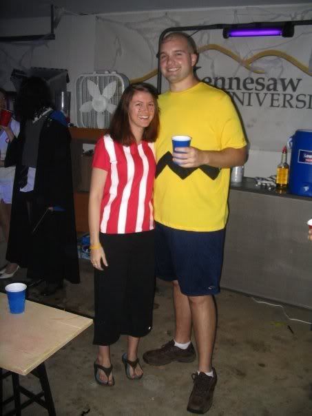 found me a XXL yellow shirt and then had to paint the stripes... Ok Megan painted the stripes. I didnt want to go so I didnt paint. You cant really see it but there is a black "swoop" line on my head like charlie browns hair.